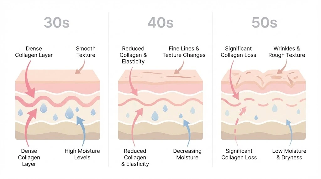After 40, skin undergoes gradual changes. According to dermatological research, the dermis (the skin's middle layer) becomes thinner over time. The body's natural production of hyaluronic acid—the molecule that helps skin retain moisture—gradually decreases. Some studies suggest collagen production may decline by approximately 1% per year starting in the early 30s.